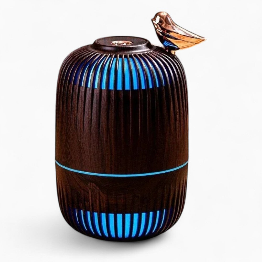 Transforme qualquer ambiente em um refúgio de tranquilidade. O DreamBird® combina tecnologia ultrassônica com design natural em madeira, criando uma atmosfera suave e perfumada enquanto purifica o ar.